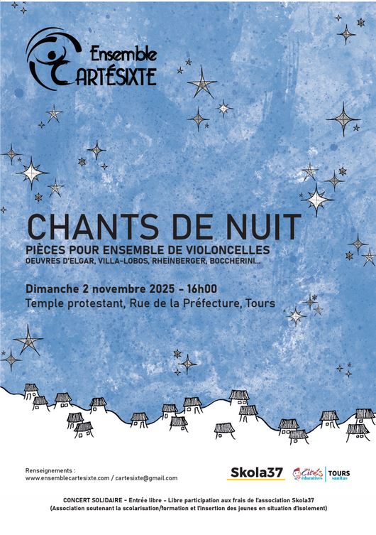 CONCERT SOLIDAIRE – Entrée libre – Libre participation aux frais de l’association Skola37 (Association soutenant la scolarisation/formation et l’insertion des jeunes en situation d’isolement)