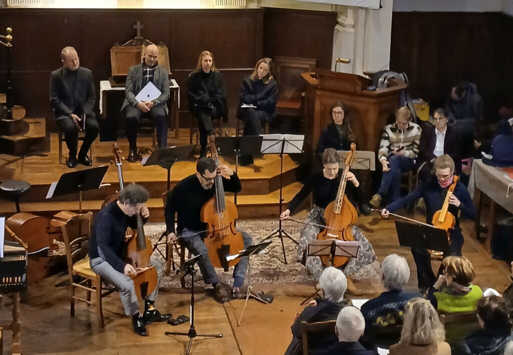 Etienne Bazola : baryton – Diana Lee : violon 1 – Anne-Sophie Brioude : violon 2 – Mathilde Vialle : viole -François Gallon : violoncelle – Marion Le Moal : hautbois – Marie Lerbret : basson et flûte à bec – Mathieu Valfré : orgue – Jean-Miguel Aristizabal : clavecin